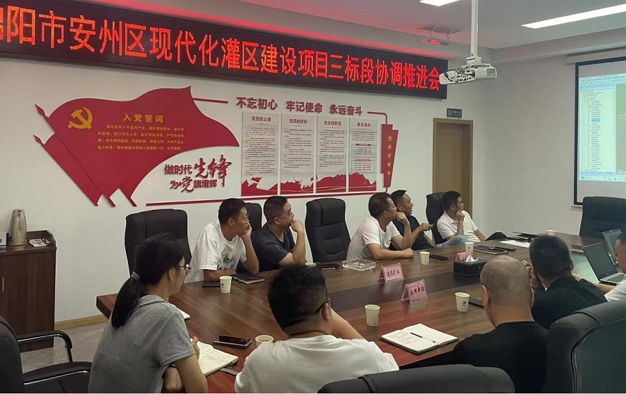 8月8日,公司組織召開綿陽市安州區(qū)現(xiàn)代化灌區(qū)項(xiàng)目(三標(biāo)段)協(xié)調(diào)推進(jìn)會(huì)。區(qū)水利局、項(xiàng)目參建單位相關(guān)負(fù)責(zé)人參加。(素材來源:工程項(xiàng)目部 辛佳洋)