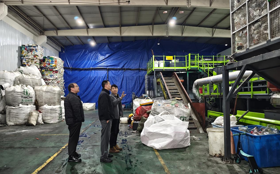 3月15日,建強(qiáng)鑫公司總經(jīng)理王詩(shī)棟帶隊(duì)到杭州市臨平區(qū)考察再生資源循環(huán)利用暨城市廢塑料回收智能打包項(xiàng)目。(素材來(lái)源:建投物流公司 向華昆)