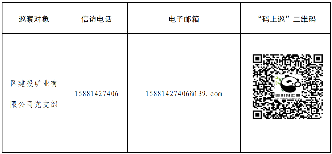 據(jù)悉,區(qū)委第三巡察組將進(jìn)駐區(qū)建投礦業(yè)有限公司開展為期30天的巡察監(jiān)督。巡察期間(5月13日—6月13日)設(shè)專門信訪電話:15881427406,電子郵箱:15881427406@139.com,并在區(qū)建投礦業(yè)有限公司正門保安處(安州區(qū)花荄鎮(zhèn)大北街074號)、區(qū)建投礦業(yè)有限公司一樓子公司辦公點(安州區(qū)花荄鎮(zhèn)大東街005號)設(shè)置了征求意見箱,同步發(fā)布四川“碼上巡”二維碼,并設(shè)有信訪接待點(受理群眾來訪時間為工作日9:00-12:00;14:00-17:00),信訪接訪點地址為:安州區(qū)群眾來訪接待中心(安州區(qū)花荄鎮(zhèn)銀河大道8號)。根據(jù)巡視工作條例規(guī)定,巡察組主要受理反映區(qū)建投礦業(yè)有限公司黨支部領(lǐng)導(dǎo)班子及其成員、下一級機(jī)構(gòu)領(lǐng)導(dǎo)班子主要負(fù)責(zé)人、重要崗位領(lǐng)導(dǎo)干部是否存在違反政治紀(jì)律、組織紀(jì)律、廉潔紀(jì)律、群眾紀(jì)律、工作紀(jì)律和生活紀(jì)律等方面的舉報和反映。其他不屬于巡察受理范圍的信訪問題,將按照分級負(fù)責(zé)、屬地管理原則,轉(zhuǎn)交有關(guān)單位辦理。